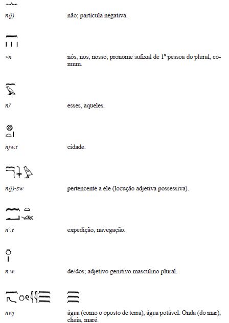 244 Construção do tipo sdm pw jrj.w.n=f (“ouvir, foi o que eu fiz”). Lit.: “navegar, foi o que nós fizemos, para o norte”.