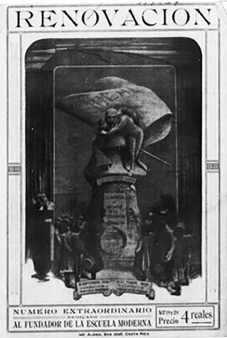 A primeira (Figura 8), circulou também como postal colorizado na Europa (Figura 11), além de figurar na capa de uma edição especial em homenagem ao educador da revista costa-riquenha Renovación, no ano de 1911 (Figura 12) e em um periódico de língua holandesa que não foi possível ser identificado (Figura 13).