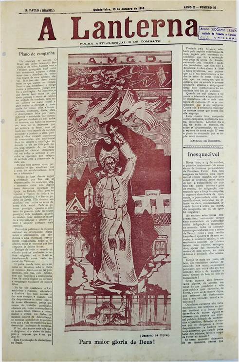 Keywords: A Lanterna, Francisco Ferrer, Anti-clericalism, Iconography, Brazil’s First Republic.