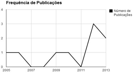 No que diz respeito aos indicadores bibliométricos, foram discriminados os seguintes itens: autores, ano de publicação, revista de publicação, idioma e país de estudo. A primeira publicação analisada sobre o tema foi em 2005, realizada por Saul Shifmman. Percebe-se que as publicações subjacentes continuaram em baixo número, com apenas uma publicação em 2006, 2009 e 2010, indicando um não crescimento da produção científica. Pode-se perceber por outro lado aumento do interesse pelo tema nos últimos dois anos, com três e duas publicações, respectivamente.