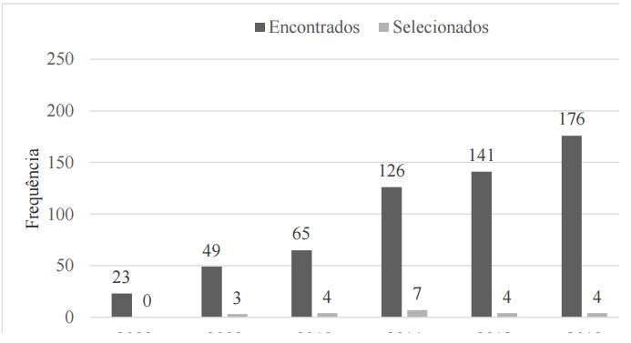 Dando seguimento ao processo de seleção e análise dos artigos, foram excluídos resultados que correspondiam a resenhas de livros, filmes ou que davam acesso apenas ao resumo e não ao texto completo do trabalho. Além disso, seguindo os critérios de inclusão e exclusão, livros, capítulos de livros, teses e dissertações também não foram considerados para fins de resultados e análise finais. Quanto à duplicidade de resultados, os artigos que apresentaram essa característica foram considerados apenas uma vez, para fins de contabilização e análise, e atribuídos à base de dados em que houve a primeira ocorrência.