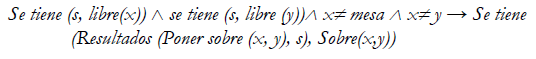 Se tiene (s, Rojo(x)) →Se tiene (Resultados (Poner sobre (x, y), s), Rojo(x))