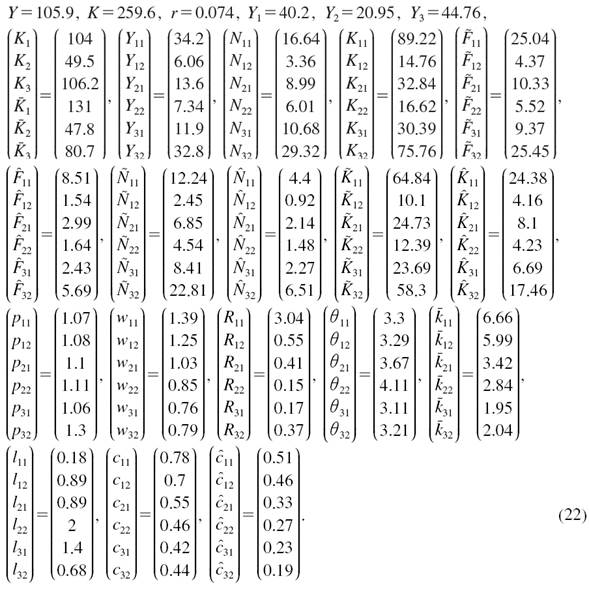 It is straightforward to confirm that all the variables become stationary in the long term. The simulation confirms that the system has a unique equilibrium. We list the equilibrium values in (22)