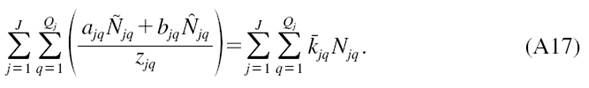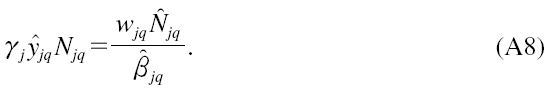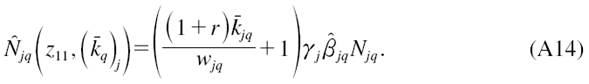 by (A9) → pjq(t) by (A6) → Nj1(t) by (A12) → Njq(t) by (A13) → Rjq(t) by (A13) → ljq(t) Ljq /Njq (t) →  by (A14) → Ñjq(t) by (A14) →