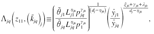 and labor by Ñjq(t), at each point in time t. The production functions are specified as