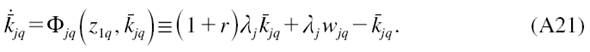 ) defined in the appendix. For any given positive values of z11(t) and ( ) at any point in time, the other variables are uniquely determined by the following procedure: r(t) by (A3) → wjq(t) by (A4) →