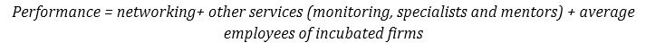 The variables have been chosen because they cover the pro-active external actions (networking) and pro-active internal ones (provision of specialists, mentors and monitoring). The availability of these services increases the permeability of their results on entrepreneurship in the neighboring areas and make them more efficient not only for the hosted entrepreneurs and start-ups, but for the entrepreneurship ecosystem thanks to increased connectivity.