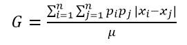 The Gini index () is the ratio of the area under Lorenz curve and the line of equality: