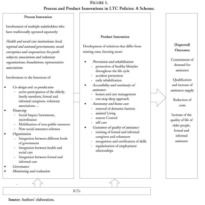 These development lines are outlined schematically in Figure 1, which stresses the multidimensional nature of innovation by distinguishing process and product innovations in LTC policies.