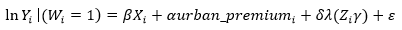 [A.2.2]Then, the wage equation conditioned to the participation in the labor market is obtained.