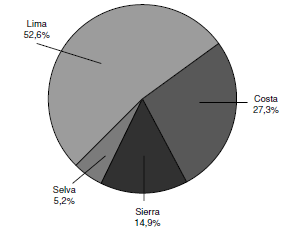 La concentración espacial es uno de los principales problemas del país, primero de Lima frente a las otras regiones y luego entre las otras regiones, este problema se originó principalmente en el siglo pasado debido a los grandes flujos migratorios hacia la costa y particularmente a Lima como capital del país desde las regiones de sierra y selva, principalmente. Es así que Lima concentra el 52,6% del PIB (Figura 11). Además, Lima Metropolitana reúne el 27% de la población 11. La concentración espacial a nivel económico, de servicios, infraestructuras y de población que presenta Lima se ha replicado a las capitales de regiones o departamentos.