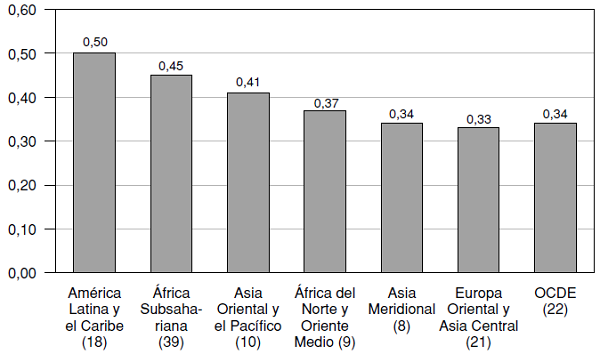 América Latina y el Caribe es la región que presenta los índices más altos de desigualdad en la distribución del ingreso y de disparidades territoriales dentro y entre países de la región, siendo estas disparidades una muestra de las desigualdades económicas y sociales (CEPAL, 2015, 2017a, 2017b).