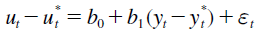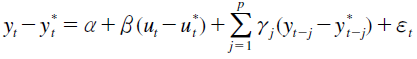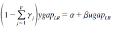 The empirical counterpart of the theoretical model discussed in section 2 establishes a stable relationship between the output gap and the unemployment gap, of the type: