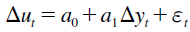 (1)where α0 is the constant of the regression (the intercept), α1 is Okun’s coefficient and should take negative values (α1 < 0). It measures the sensitivity of changes in output on changes in the unemployment rate. Finally,