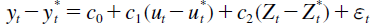 (4)where c0 = α and, more importantly, c1 = b is our parameter of interest in this research. The remaining terms in (4) are easily to interpret from the discussion above.