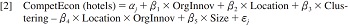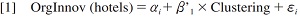 Hypothesis (1) entails a positive impact from clustering to the hotel’s economic competitiveness (represented in equation [1]). Equation [2] shows the expected signs in the specification of the main equation.
