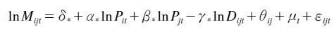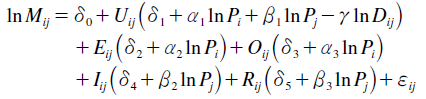 (5)For interpretation, this gravity model equation can also be rewritten in the following form: