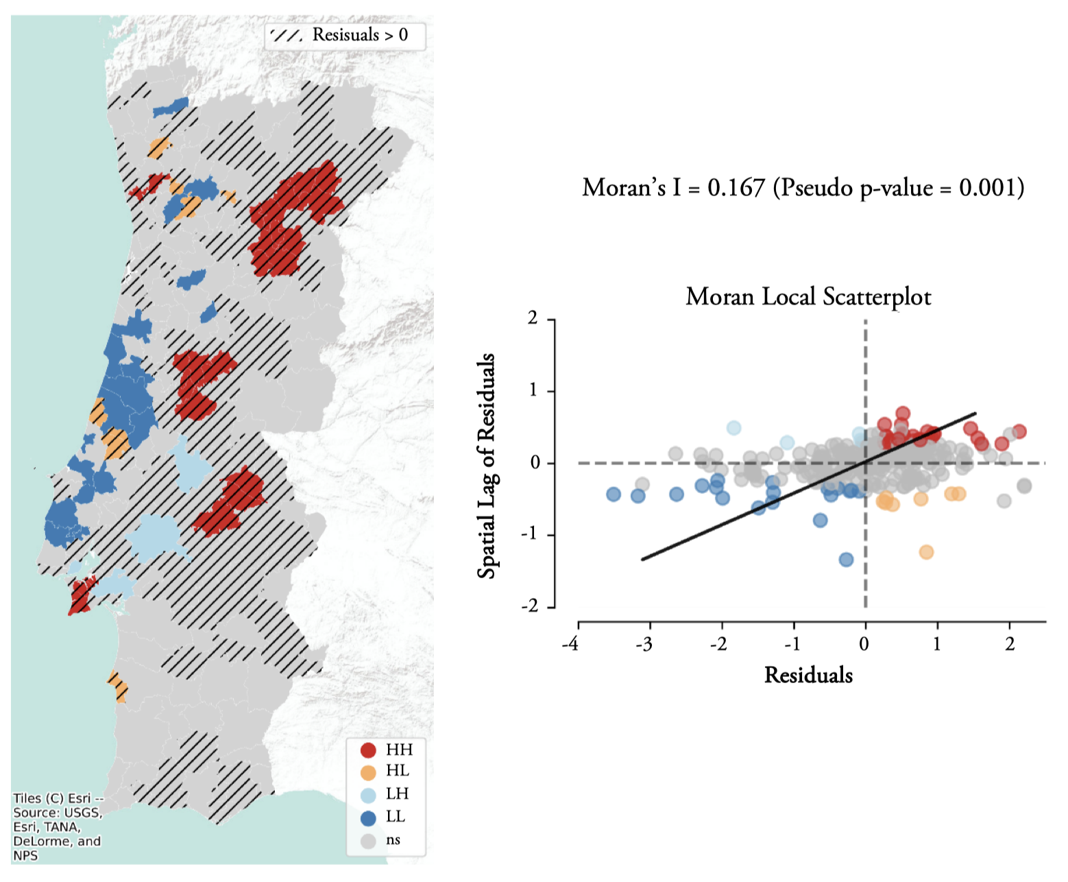 LISA Cluster of residuals at left. Moran Local Scatterplot at right