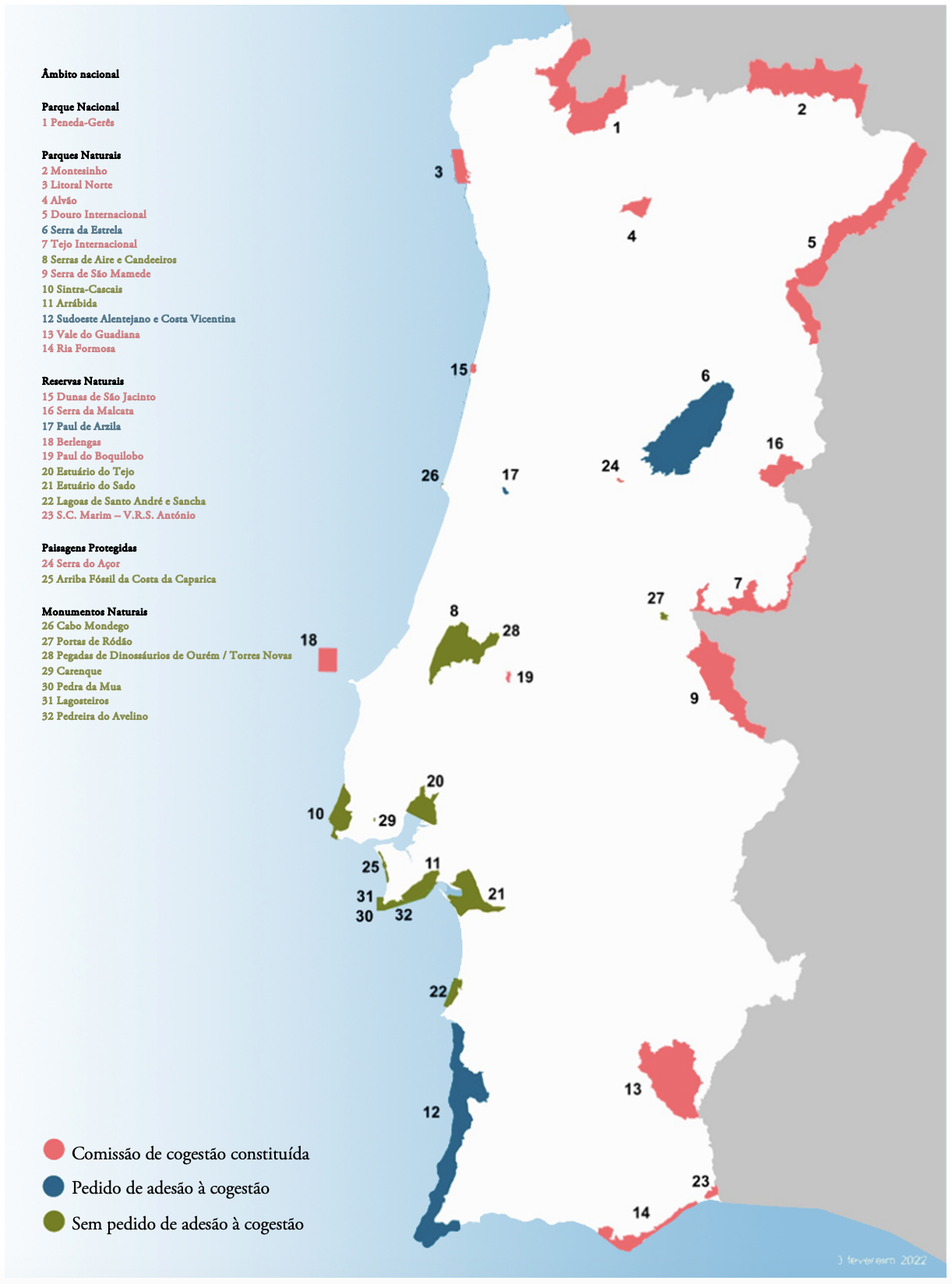 In 2019 the model of co-management of protected areas was established (Decree-Law 116/2019) as the intention of transferring management competences of protected areas to Municipalities, also involving other entities such as universities, non-governmental organizations and public entities. This policy arises in the framework of a national policy of transferring competences to local authorities in different areas of action from the central state, for example, education, social action, health, civil protection, culture, heritage, habitation to forest and protected areas management (Law 50/2018). The policy of co-management of protected areas is ranged with the National Strategy for Nature Conservation and Biodiversity 2030 (published in 2018; Council of Ministers Resolution 55/2018) and is established as a model of "participatory and collaborative management" with which a dynamic of "proximity management" is intended. However, everything indicates that this change in the management policy of protected areas results mainly from a broad national policy of subsidiarity, decentralization and regionalization and not so much an option for a new community-based management model (e.g., Brosius, Tsing & Zerner, 1998) in which greater involvement of local populations in the destinies of their territory is sought. As Iannuzzi, Santos & Mourato (2020) fully states in their article, despite all the good intentions inscribed in law, the central state does not abdicate to “retain control and institutional fit while adapting to a dynamic multilevel governance and bottom-up requests” (p.1691). The authors call for a “cultural and organizational” transformation in a wider sense.