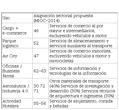 Asignación sectorial propuesta de la actividad que se generaría en la Ciudad Aeroportuaria del Aeropuerto de Barcelona