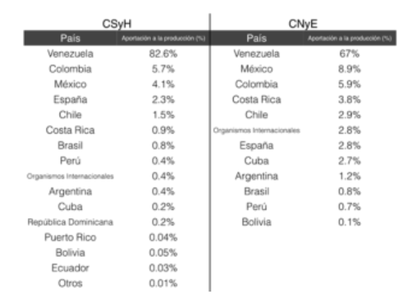 Asimismo, se observa en Venezuela la existencia de centros de producción que marcan las pautas de la producción científica (son cinco instituciones distintas para cada área las que adscriben a los investigadores que generan el 66.2% y 58.6% de los artículos para las CSyH y CNyE, respectivamente) y editorial; concentración que plantea una distribución desigual del quehacer científico en una lógica centro-periferia.