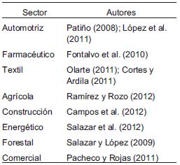 La aplicabilidad del modelo SCOR, ha sido objeto de múltiples trabajos, buscando siempre la solución de diversos problemas y la excelencia operacional de la cadena de suministros (Cuadro 3). De los artículos revisados se analizan los diferentes sectores en los cuales se aplicó el modelo SCOR (Cuadro 4). Dado lo anterior se plantea un caso de estudio interesante producto de la poca aplicabilidad, como es el de una empresa del sector eléctrico industrial, donde se presentan problemas relacionados con el cumplimiento de las ordenes y la calidad del producto final.