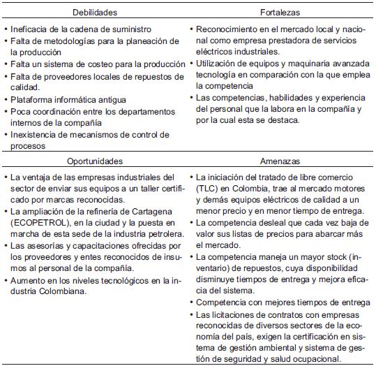 Teniendo en cuenta los aspectos internos como las debilidades, fortalezas, y los externos como las oportunidades y amenazas, es evidente la ineficacia de la cadena de suministros, la falta de planeación de la producción y la competencia desleal al igual que la llegada al país de equipos cada vez más accesible al público, la pérdida de clientes por no ofrecer oportunamente la reparación de equipo a falta de repuestos, preocupan seriamente a los directivos de la compañía; incluso tales debilidades y amenazas pueden afectar significativamente al reconocimiento local y nacional trayendo como consecuencia la disolución del apoyo otorgado por las marcas reconocidas de los equipos.