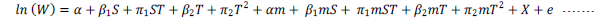 Se estimaron las tasas de depreciación del capital humano adquirido tanto por la educación como por la experiencia en diferentes puntos del tiempo, de esa manera se corre el modelo empírico propuesto por Neuman y Weiss (1995) en los años 2007, 2009, 2011, 2013 y 2015 (modelo 1). Los autores construyen el siguiente modelo Minceriano estándar: