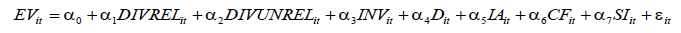 El modelo para probar la hipótesis 1 contiene en línea con Campa, et al, (2002), además de la variable de diversificación, otras variables asociadas directamente con el exceso de valor de estas empresas multisegmento.