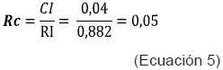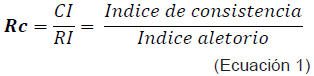 Relación de consistencia (RC): por lo que reemplazando se obtiene un valor igual a: