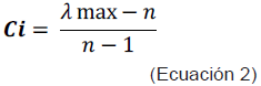 El valor del índice de consistencia (CI) se calcula mediante la siguiente expresión: