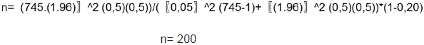 El tipo de muestreo utilizado es el probabilístico o aleatorio sobre una población total de 745 microempresas, con un 95% de confianza, 5% de error, optimizado con un 20% de porcentaje de selección de la muestra, el cual permitió estimar el tamaño muestral representado por 200 microempresas: