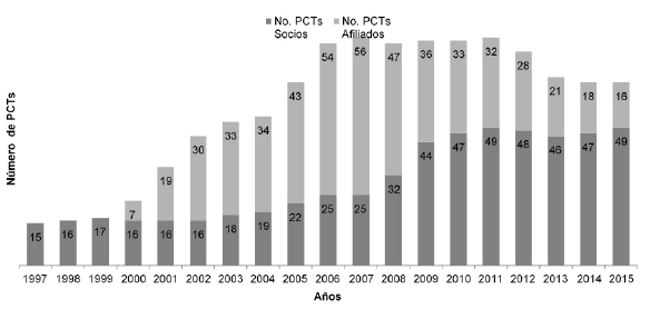 Los PCTs han tenido un importante crecimiento durante los años 1997 al 2015, pasando de 15 a 65 parques y de 650 a 7.736 empresas asentadas en ellos. La evolución anual de los PCTs se puede dimensionar en diferentes variables: número de parques creados, número de empresas que han escogido ubicarse en esta localización, número de empleados contratados y facturación de estas empresas.