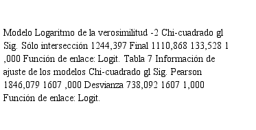 De acuerdo con la Tabla 7, la información de ajuste de los modelos nos indica que la significancia del modelo es menor a 0.05. (p=0.000), lo que implica que el modelo es adecuado para el ajuste de los datos
