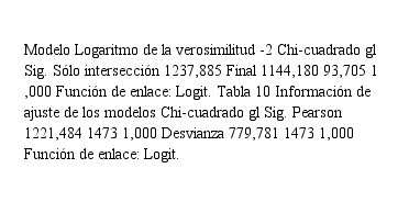 De acuerdo con la Tabla 10, la información de ajuste de los modelos nos indica que la significancia del modelo es menor a 0.05. (p=0.000), lo que implica que el modelo es adecuado para el ajuste de los datos.