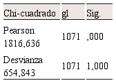 De acuerdo con la Tabla 13, la información de ajuste de los modelos nos indica que la significancia del modelo es menor a 0.05. (p=0.000), lo que implica que el modelo es adecuado para el ajuste de los datos.