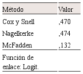El R2 de Nagelkerke comprueba que la eficacia predictiva de la probabilidad de ocurrencia de las categorías de la variable dependiente es de 47.4%, lo cual indica a su vez que el 52.6% restante viene explicado por las otras variables que no fueron incluidas en el modelo (Tabla 11).