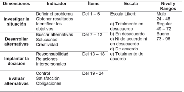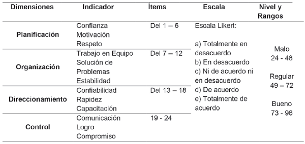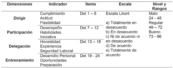 Es de destacar que partiendo del proceso de operacionalización de las variables identificadas en esta investigación (Tablas 1, 2 y 3), se obtiene como resultado un instrumento de recolección de información tipo cuestionario, contentivo de 24 preguntas tipo Likert, con la siguiente escala: totalmente de acuerdo, de acuerdo, ni de acuerdo ni en desacuerdo, en desacuerdo, totalmente en desacuerdo. El cuestionario fue aplicado a la muestra seleccionada con la finalidad de conocer su apreciación en relación a la gestión pública, el liderazgo de las mujeres y la toma de decisiones.
