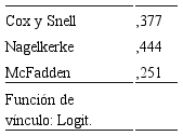 En cuanto a la bondad de ajuste de la Tabla 4, el p-valor = 0.595 de Chi cuadrado es mayor a 0.05, lo cual confirma que el modelo se ajusta adecuadamente a los datos. En la prueba del Pseudo R cuadrado de tabla 13, se tiene el coeficiente de Nagalkerke, el cual implica que el 44.4% de la variabilidad de la efectividad en otorgamiento de citas depende del nivel de cursos de capacitación.