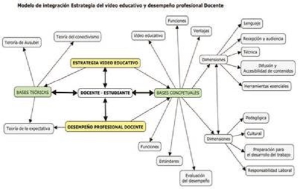 En consecuencia, el modelo utilizado permite visualizar la interacción entre los diferentes elementos de las variables de investigación, para generar cambios en el docente y como sobre él influye el programa de estrategias del video educativo, con sus teorías y bases conceptuales que han permitido elaborar diversos talleres tales como: Conociendo los recursos audiovisuales en el proceso de enseñanza – aprendizaje; compartiendo e interactuando mediante las diversas herramientas del internet y dispositivos móviles; se aprende creando y editando nuestros audiovisuales educativos; con las tecnologías digitales y videos educativos enseñamos a los estudiantes el lado positivo de los audiovisuales y planificamos nuestras unidades y sesiones de aprendizaje utilizando audiovisuales – videos educativos, a través de la ejecución de los temas antes citados se ha logrado que los docentes se familiaricen con el uso de las computadoras y software para la elaboración de videos educativos en sus actividades de aprendizaje, que van a desarrollar con sus estudiantes, fortaleciendo el desempeño profesional del docente en el aula de clase.