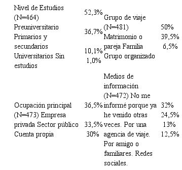 5. Segmentación y valoración del mercado turístico: Resultados de la descripción de la muestra