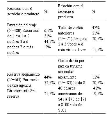 Las principales características demográfica y del viaje de la muestra evidencia que los turistas identificaron como su destino principal en Cuba a la ciudad de Trinidad (53,5%) por encima de La Habana y otros destinos destacados, realizan sus viajes en un mayor porcentaje en Matrimonio o pareja (50%), de igual manera conocen el destino pues han venido otras veces (32%) y dentro de los principales factores que motivaron su viaje destaca: curiosidad por conocer el municipio; poder ir a la playa y el patrimonio cultural e histórico. Otros resultados del trabajo de campo sobre el comportamiento de la muestra en cuanto a la relación con el servicio o producto y la evaluación y fidelidad con el destino turístico de Trinidad de Cuba se muestra en la tabla 3.