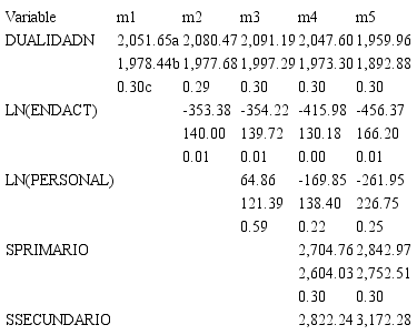 En el modelo general 2 se aplicó logaritmo en las variables paramétricas de ENACT y Personal con el propósito de buscar un mejor ajuste al modelo y a la relación de las variables estudiadas, sin embargo, ninguna variable logró ser significativa para ningún submodelo.