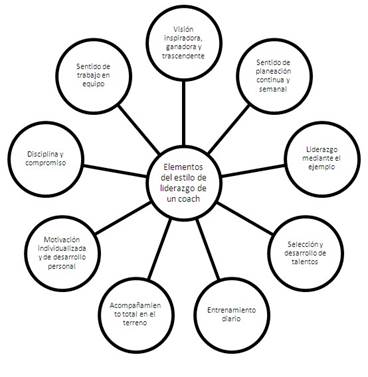 En este orden de ideas, el liderazgo del coaching como modelo que ayuda a desarrollar las competencias necesarias para el profesional, se vale de las cualidades del líder para facilitar procesos de transformaciones individuales y grupales que permitan el logro de los objetivos, diseñar y coordinar talleres, cursos y seminarios para posibilitar el desarrollo personal y profesional y realizar consultoría en organizaciones. Sobre el particular, el estilo de liderazgo de un coach según Salazar y Molano (2013:39), debe presentar los siguientes elementos que se especifican en el diagrama 1.