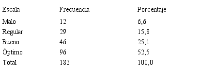 Con respecto al nivel de satisfacción del cliente, del total de encuestados se aprecia que el 6.6 % lo califica como malo, un 15.8 % como regular, un 25.1 % como bueno y un 52.5 % como óptimo (Tabla 1, Gráfico 1)