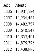 En México el Producto Interno Bruto se incrementó en el periodo 2006 a 2012, iniciando con un monto de 13,931,384 Millones de Pesos y finalizando en el registro con una cantidad de 15,430,992 Millones de Pesos, considerando que se tiene un bienestar en el país en general debido a que el incremento en la producción anualmente genera beneficios en la población en el país (Tabla 1).