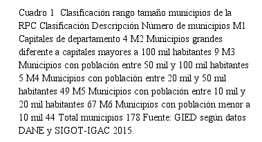 En estos territorios, el análisis de aglomeración económica parte de un proceso de organización de los municipios de la RPC por rangos de tamaño (con criterios de homogeneidad en este). En primer lugar, se definen seis grupos (Cuadro 1):