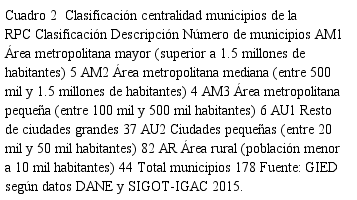 A pesar que no se presentan economías de aglomeración en los municipios de la RPC, vale anotar que el análisis es pertinente para relacionar las características de la población: tamaño, disposición dentro del espacio geográfico y de vocación económica de los municipios.