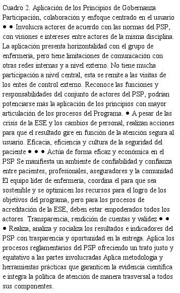 Gobernanza, enfermería, seguridad del paciente en una empresa social del estado colombiano