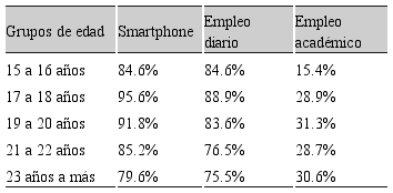 Ello quiere decir que el dispositivo móvil es uno de los medios más versátiles para acceder a internet, debido a su uso continuo en especial por las poblaciones más jóvenes frente a la gran variedad de otros dispositivos que existen en el mercado para tal fin. Además, para hacer hincapié sobre el tema, se asume la información del trabajo de Orosco-Fabián, PomasuncoHuaytalla y Torres-Cortez (2020) en la región central del Perú, donde se enfocaron en el estudio del empleo de los Smartphone por rangos de edades y, sus datos refuerzan parte de la información manifestada anteriormente, tal como se muestran en la Tabla 9. En dicho trabajo se refuerza la idea de que los grupos menores de 24 y mayores de 17 son los que en su mayoría hacen uso de las nuevas tecnologías por ser más afines a las mismas. Dichos datos refuerzan los planteamientos expuestos líneas arriba.